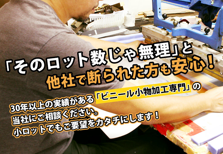 ビニール小物加工専門で30年以上の実績があり、様々なご要望にも対応可能です。